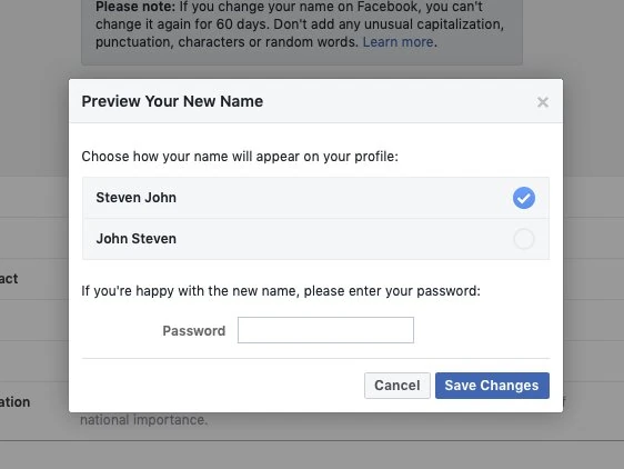 Web Facebook allows you to change your name this is helpful if you get married and change your last name or want to protect your privacy and use say your midd. Tap Personal and account information. Enter your name and tap Review. When youre ready to continue click the.
